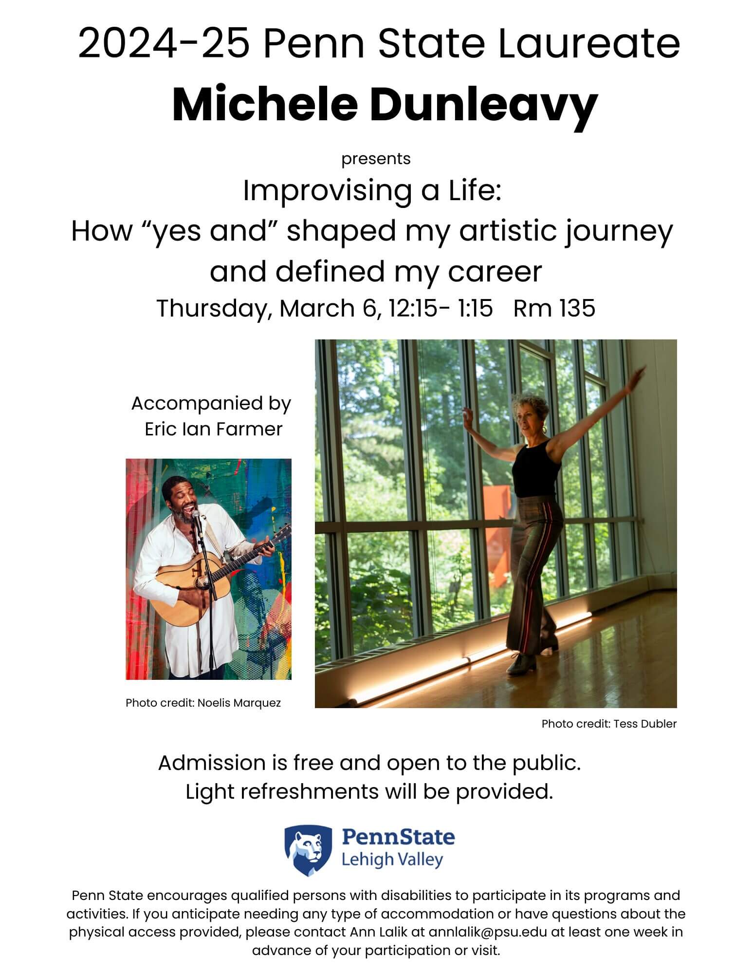 Join us in room 135 and listen as 2024-2025 Penn State Laureate Michele Dunleavy shows how her motto "yes and"...