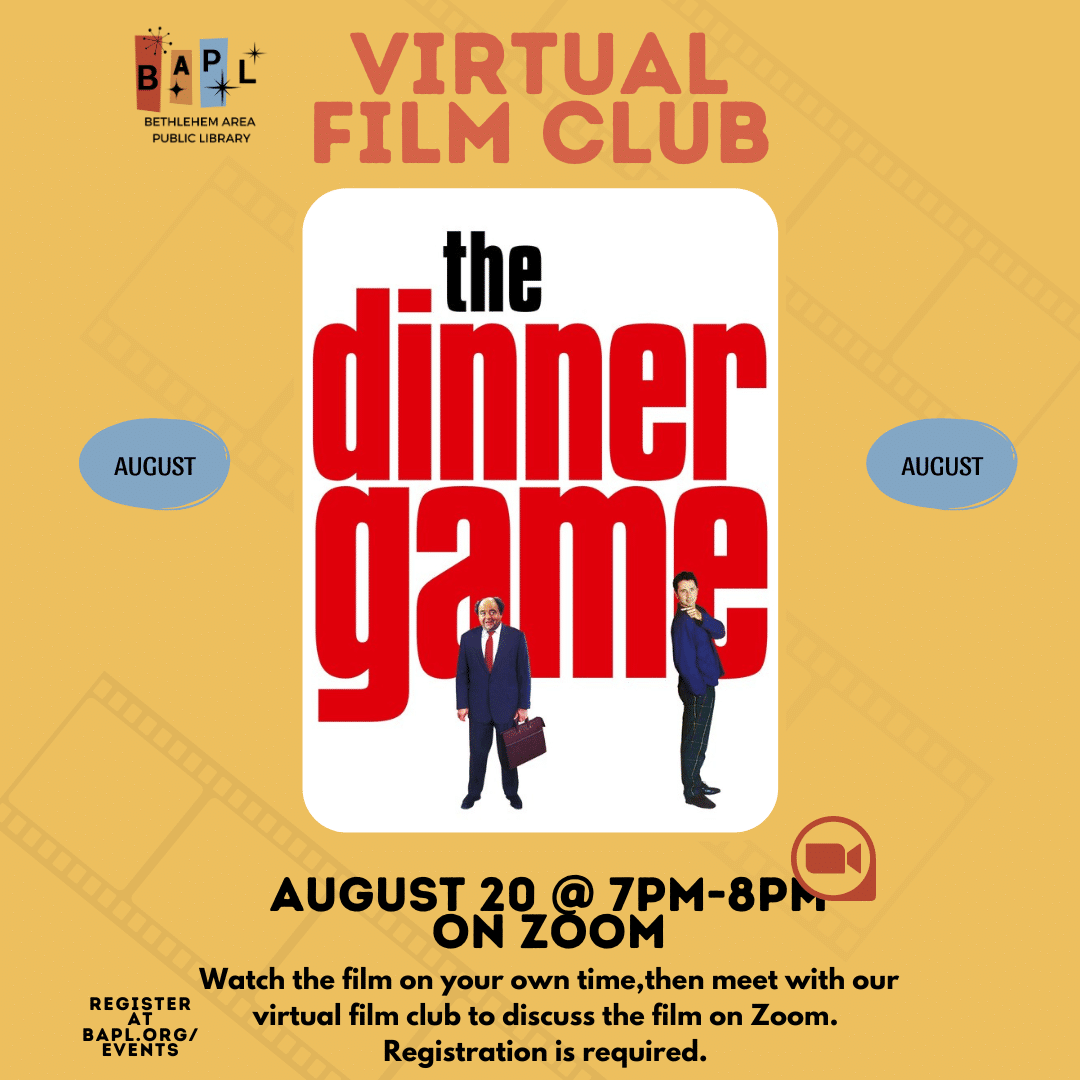 🎥🍿 Virtual Film Club 🎥🍿 📅 August 20, 2024 🕖 7:00pm – 8:00pm 💻 Join from the comfort of your...