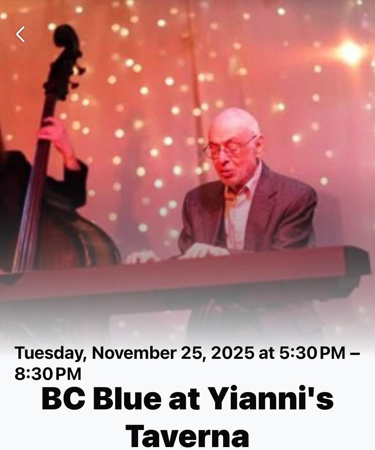 Bev Conklin, "Chicago"Carl Snyder, Joe Mac and Mitch Shelly are bringing the Blues to Yianni's. Reservations highly recommended. 610-410-9300