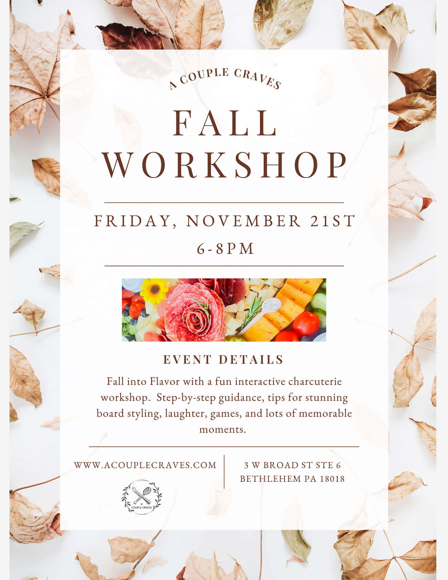 at Fall into Flavor with a fun interactive charcuterie workshop, set by step guidance, tips for stunning board styling, laughter,...