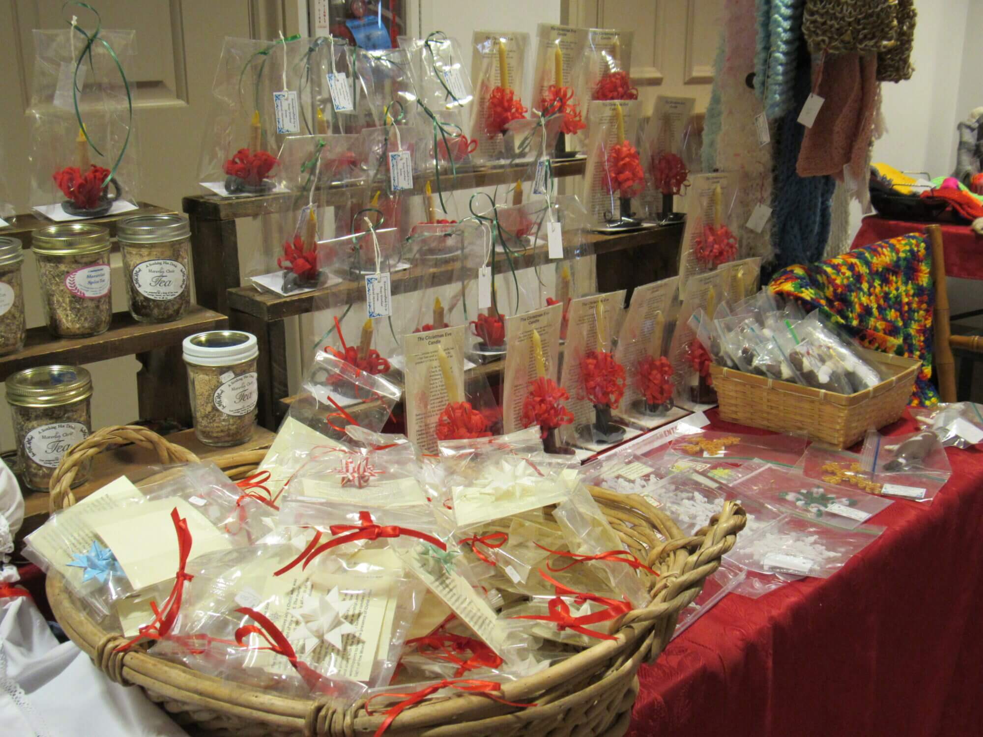 Handmade crafts, Christmas ornaments, fresh, green wreaths, paper Moravian stars, beeswax candles, delicious baked goods and Moravian Sugar Cake. Benefits...