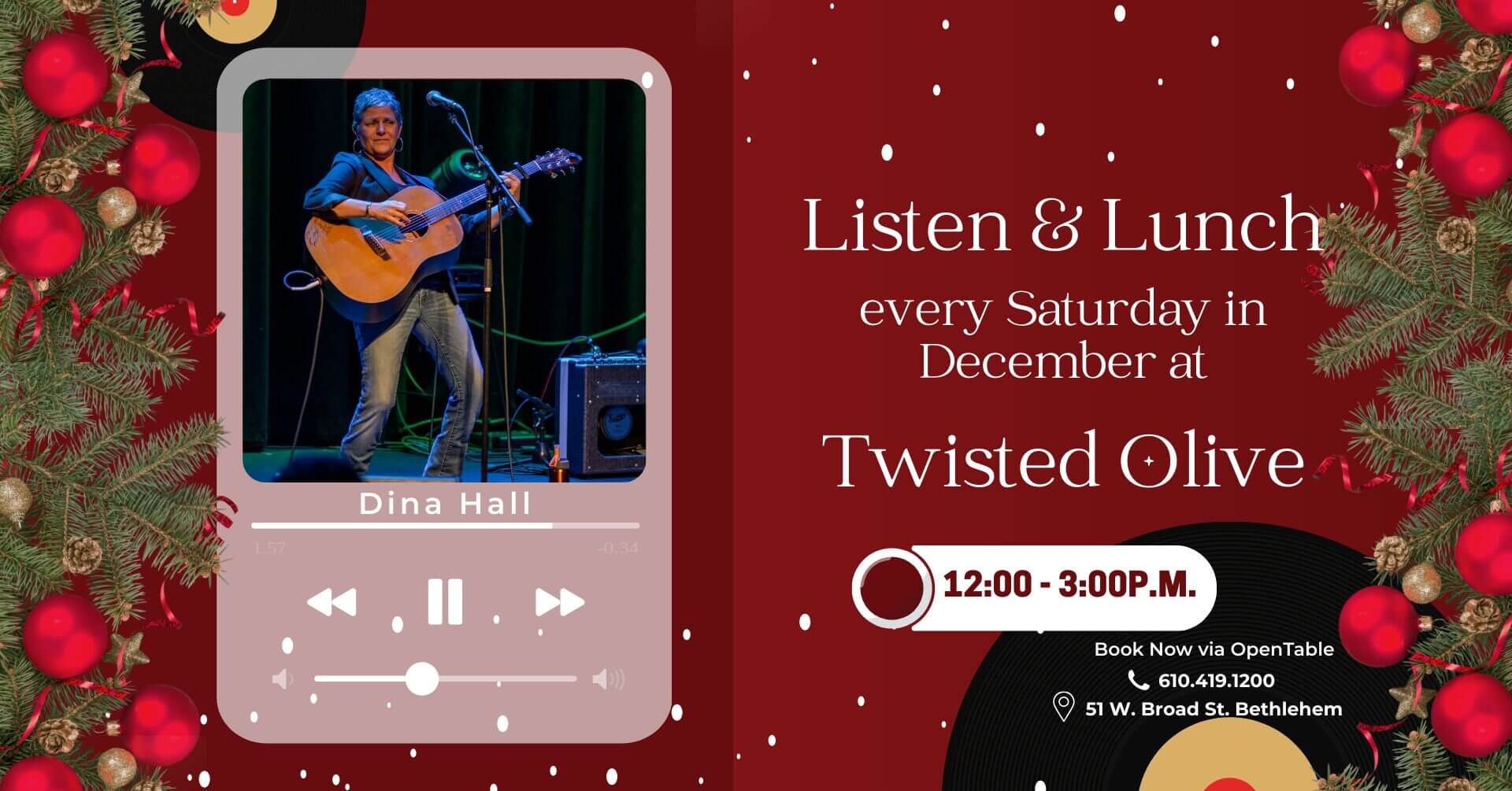 🎵🎤Listen & Lunch at Twisted Olive! Live music - Every Saturday in December When: 12:00 -3:00P.M. Every Saturday in...