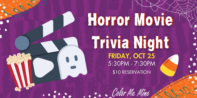 Enjoy a night out with your friends painting pottery and answering Horror Movie themed Trivia! Trivia winners gets a prize!...