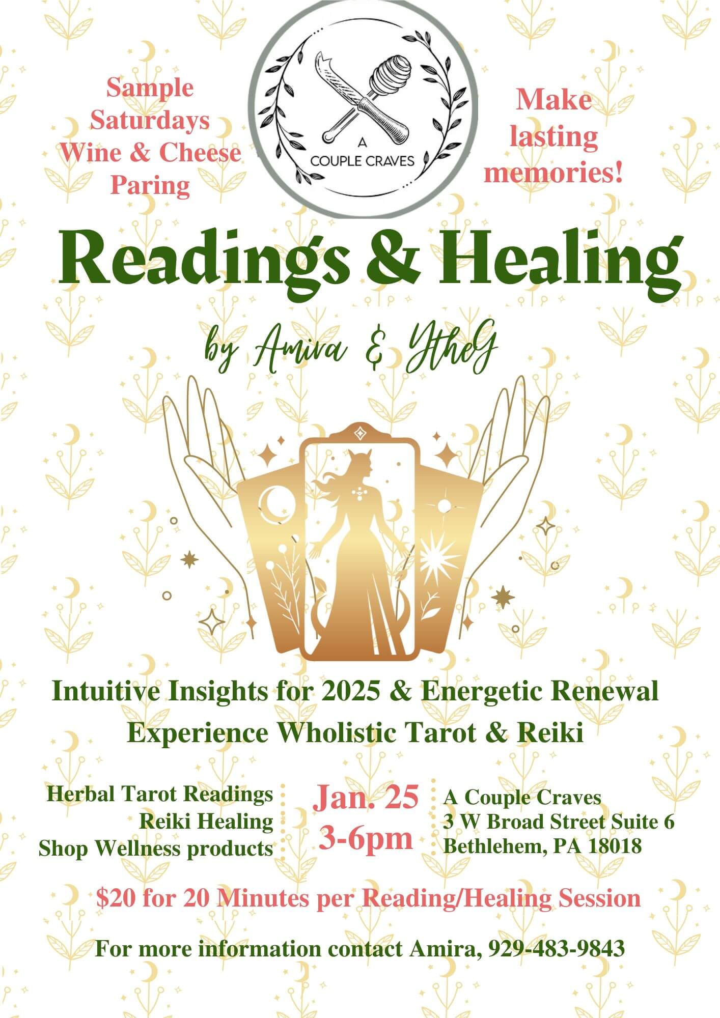 Experience Sample Saturdays wine & cheese pairing while receiving intuitive insights for 2025 and energetic renewal. $20 for 20 minutes...