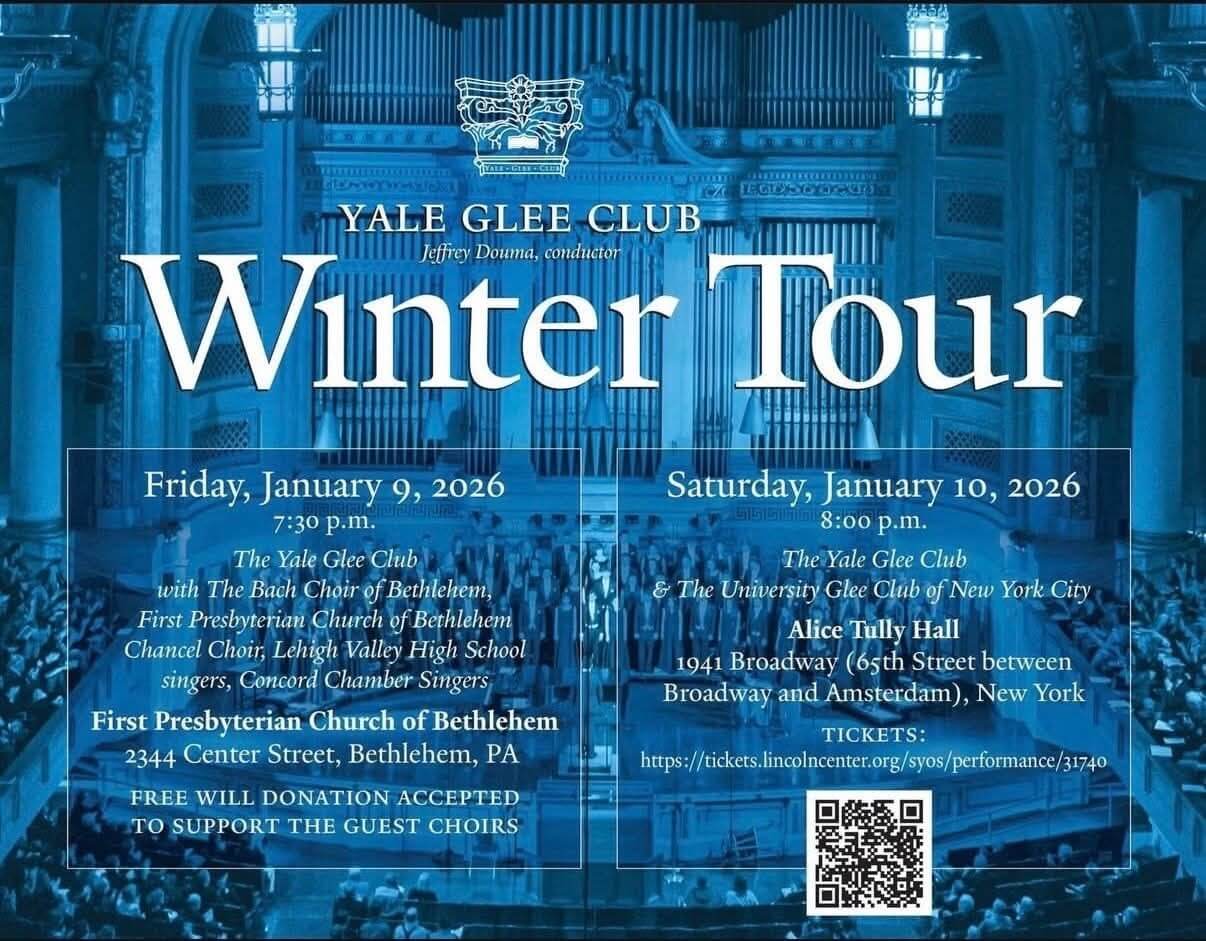 First Presbyterian Church of Bethlehem, 2344 Center St., Bethlehem will host the Yale Glee Club on Friday, Jan. 9 at...