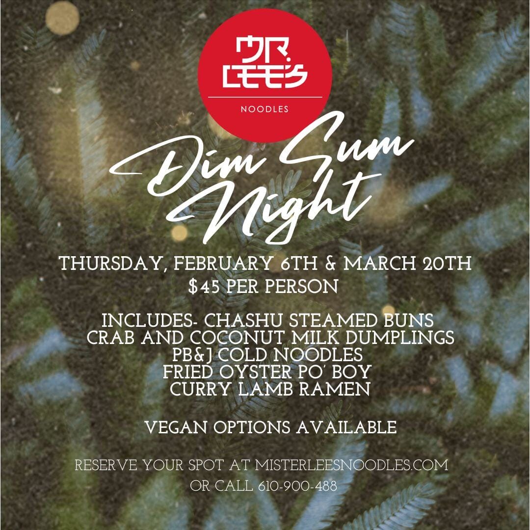 Join us at Mister Lee's Noodles in Southside Bethlehem for dim sum night on Thursday, February 6th for $45 per...