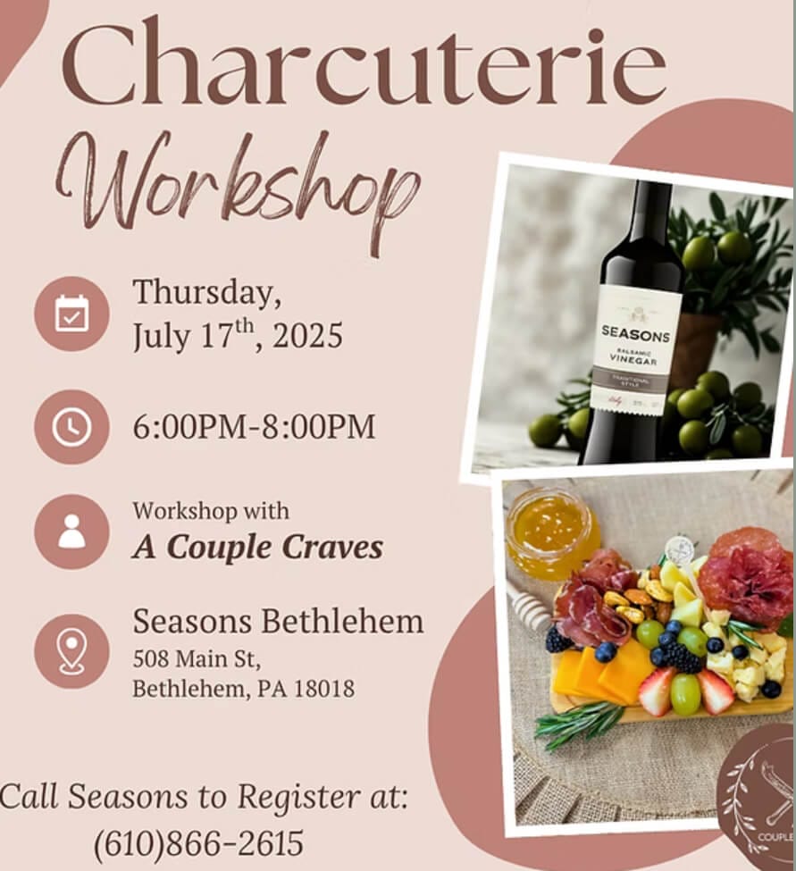 A COUPLE CRAVES, 3 W BROAD ST STE 6, BETHLEHEM, 18018Immerse yourself in a hands-on charcuterie experience mixing artisanal boards with Seasons Bethlehem’s favorites! Your ticket includes all the charcuterie...