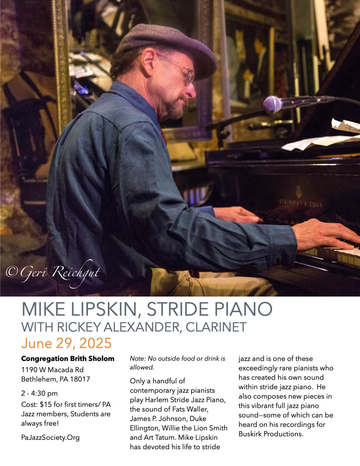 Mike Lipskin is one of the very few pianists that consistently and accurately plays stride. Stride piano is a traditional...