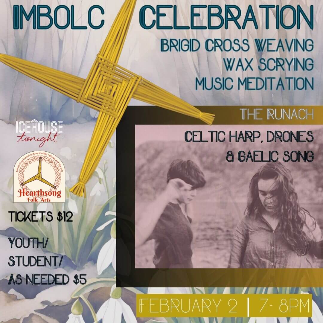 Hearthsong Folks Arts presents music meditation and hand craft - learn to make a St. Brigid's Cross and enjoy sound...