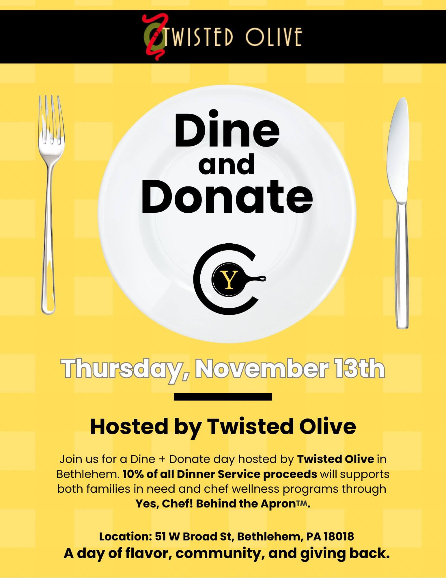 at Join us for a Dine and Donate Dinner, hosted by Twisted Olive in Bethlehem. 10% of all dinner service...