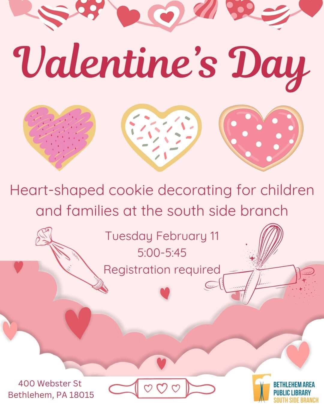 Join us at Bethlehem’s South Side Branch for a Valentine’s Day cookie decorating workshop. All supplies will be included. Register...