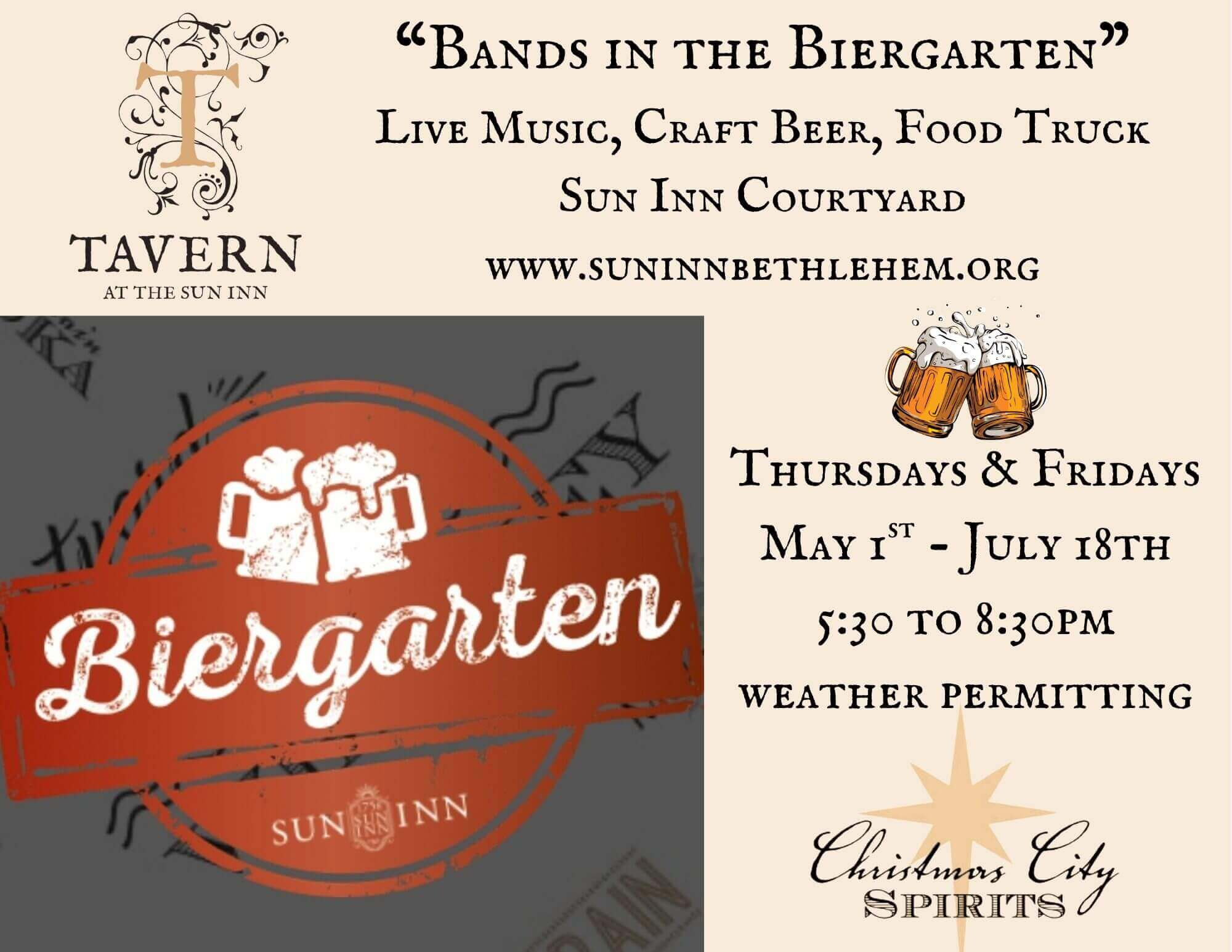 Sun Inn Stage is the setting for the “Bands in The Biergarten”. Live bands every Thursday and Friday this Summer...