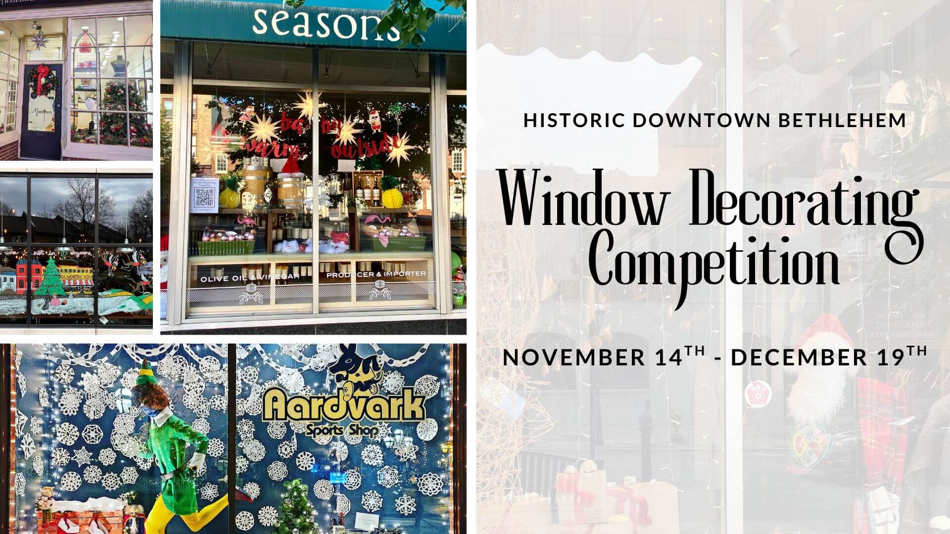Soak in the Christmas Spirit as you walk along Main St. and Broad St. for this year’s Historic Downtown Bethlehem Window Decorating Competition!